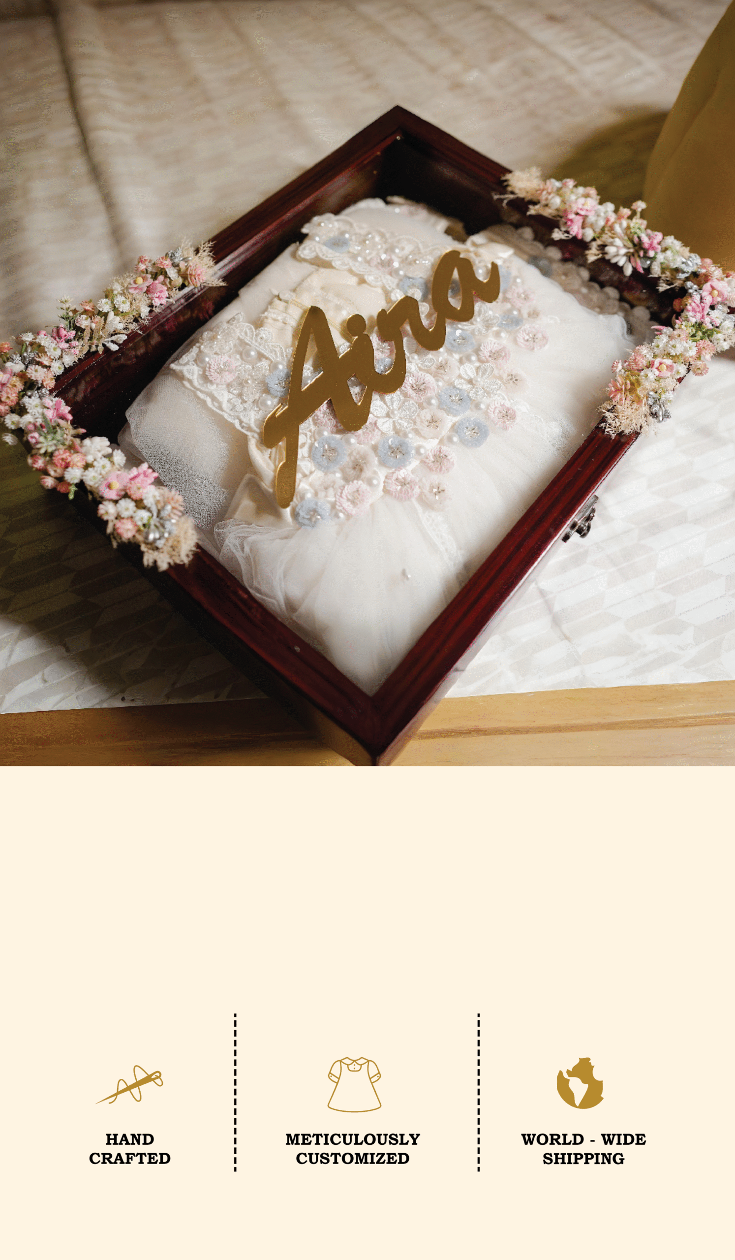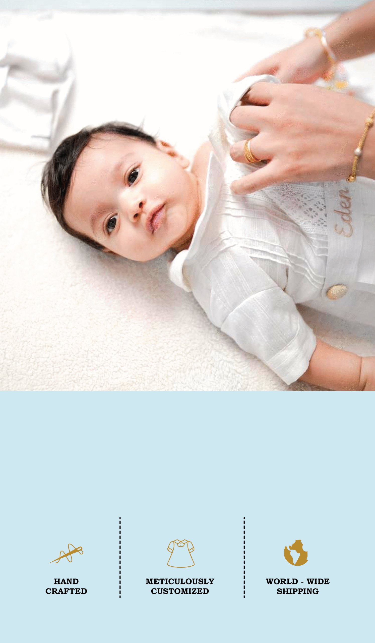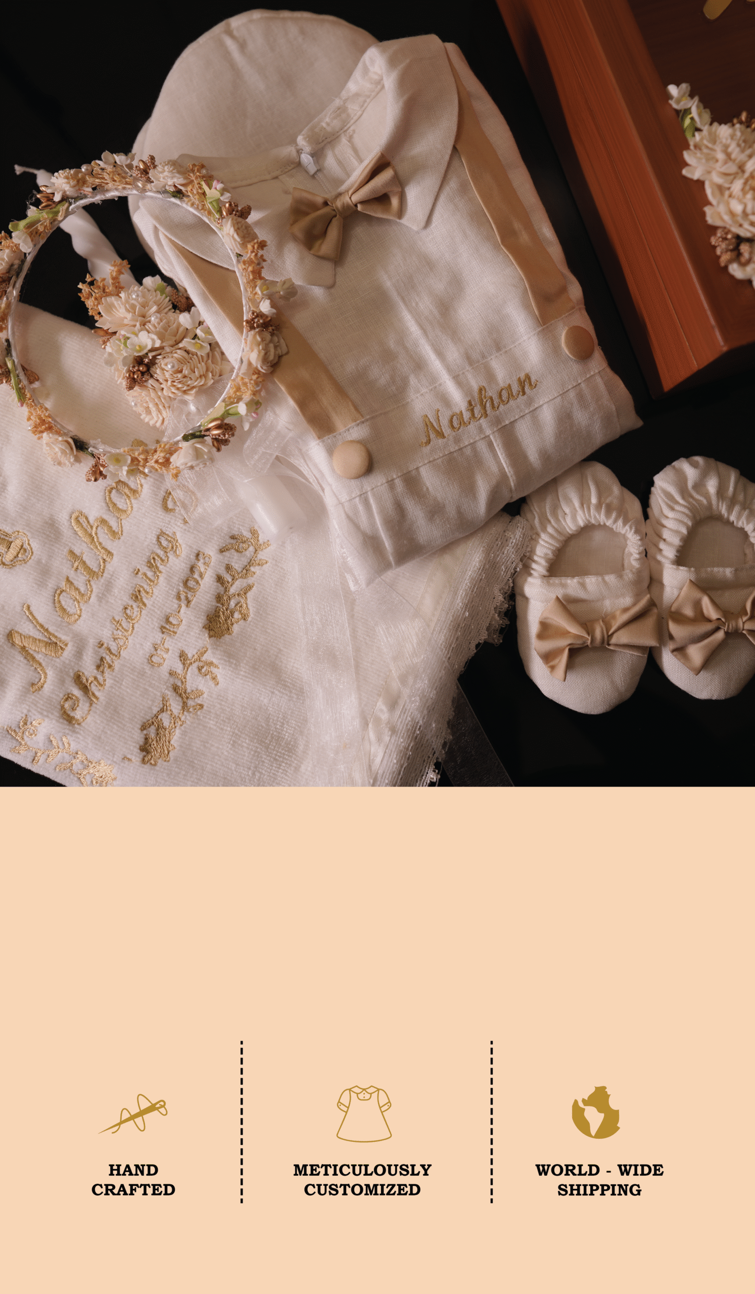 At Elannte, we craft elegant christening and baptism outfits for the most meaningful moments in your babyโs life. Designed with care and made from the finest soft fabrics, our bespoke creations bring grace and beauty to every celebration. Trusted by families since our beginning, we blend tradition with timeless style to make each occasion unforgettable.